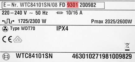 Find ud af hvor gammel din Junker hvidevare erMetoden til at finde frem til, hvor gammel din Junker hvidevare er, kan anvendes uanset hvilket apparat du har - om det er en større hvidevare som fx vaskemaskine, tørretumbler eller køleskab, eller det er et småelektronikapparat som fx en støvsuger, barbermaskine eller foodprocessor. Metoden til aldersbestemmelse er den samme uanset typen af Junker husholdningsapparat. Typeskiltet på Junker-apparater indeholder, udover e-nummeret, også et FD-nummer. Med FD-nummeret kan du aldersbestemme din hvidevare. Eksempel 1FD-nummeret består af 4 cifre og kan fx være 5309. De to første cifre vedrør årstallet og de to sidste cifre vedrør måneden. For at finde frem til produktionsåret, skal du lægge 2 til det første ciffer. Dvs. i eksemplet, skal du lægge 2 til 5, så du får 7309. Apparatet med FD-nummeret 5309 er altså produceret i september måned 1973. Eksempel 2Hvis du, efter at have lagt 2 til første ciffer, får et 5-cifret FD-nummer, skal du se bort fra det første ciffer. Er FD-nummeret eksempelvis 9301, så får du, efter at have lagt 2 til, 11301. Apparatet med FD-nummeret 9301 er altså produceret i januar måned 2013 eller 2023. |