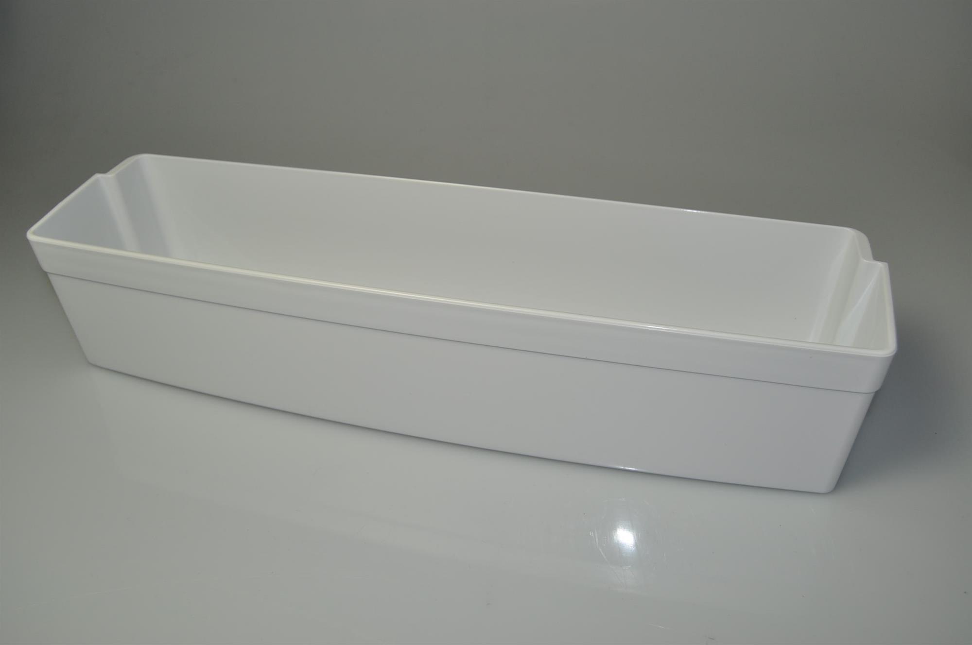 Nedre hylde i køleskabsdør, ofte anvendt som mælkehylde. Dørhylden kan nemt udskiftes uden brug af værktøj.