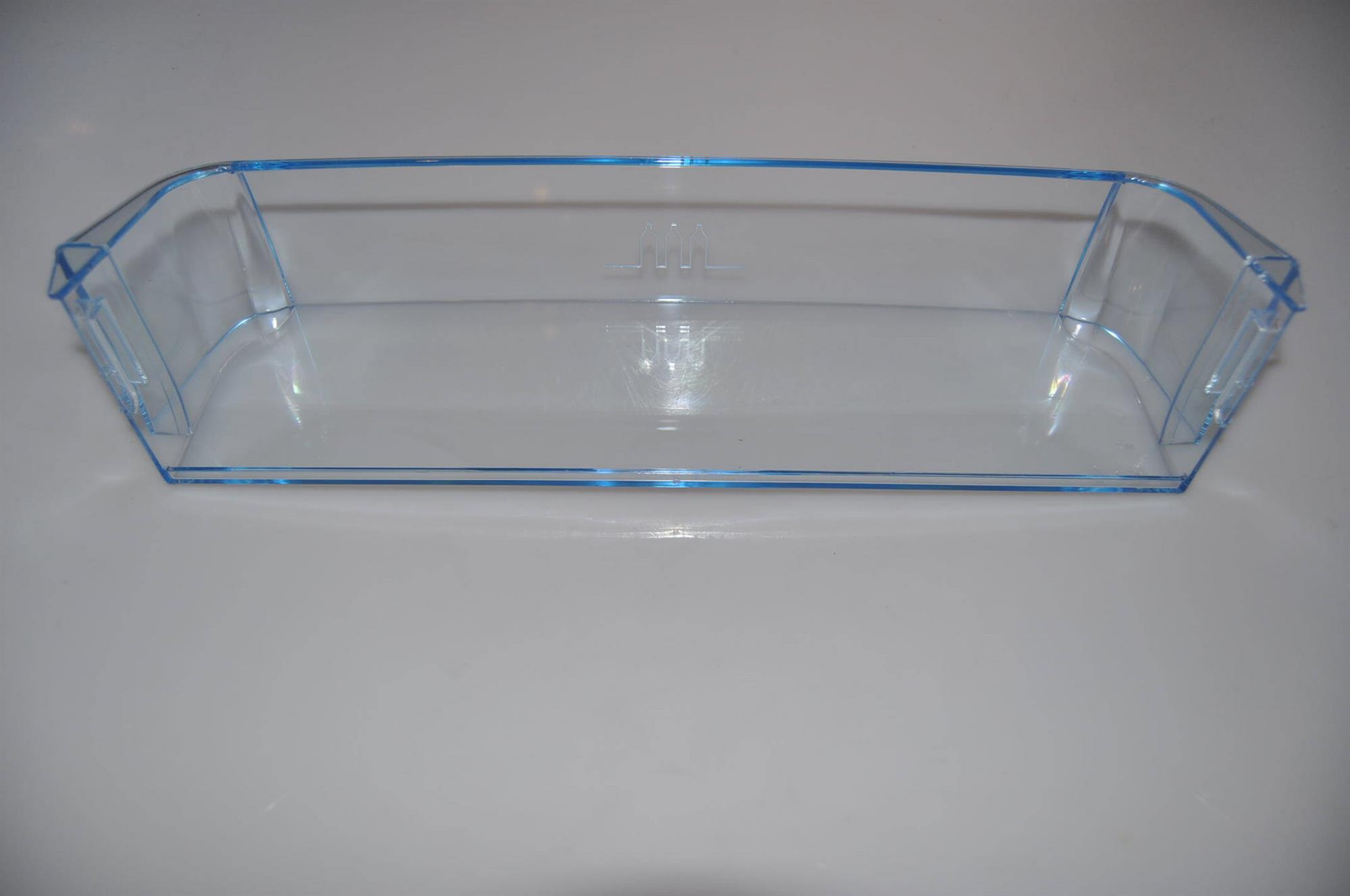 Nedre hylde i køleskabsdør, ofte anvendt som mælkehylde. Dørhylden kan nemt udskiftes uden brug af værktøj.