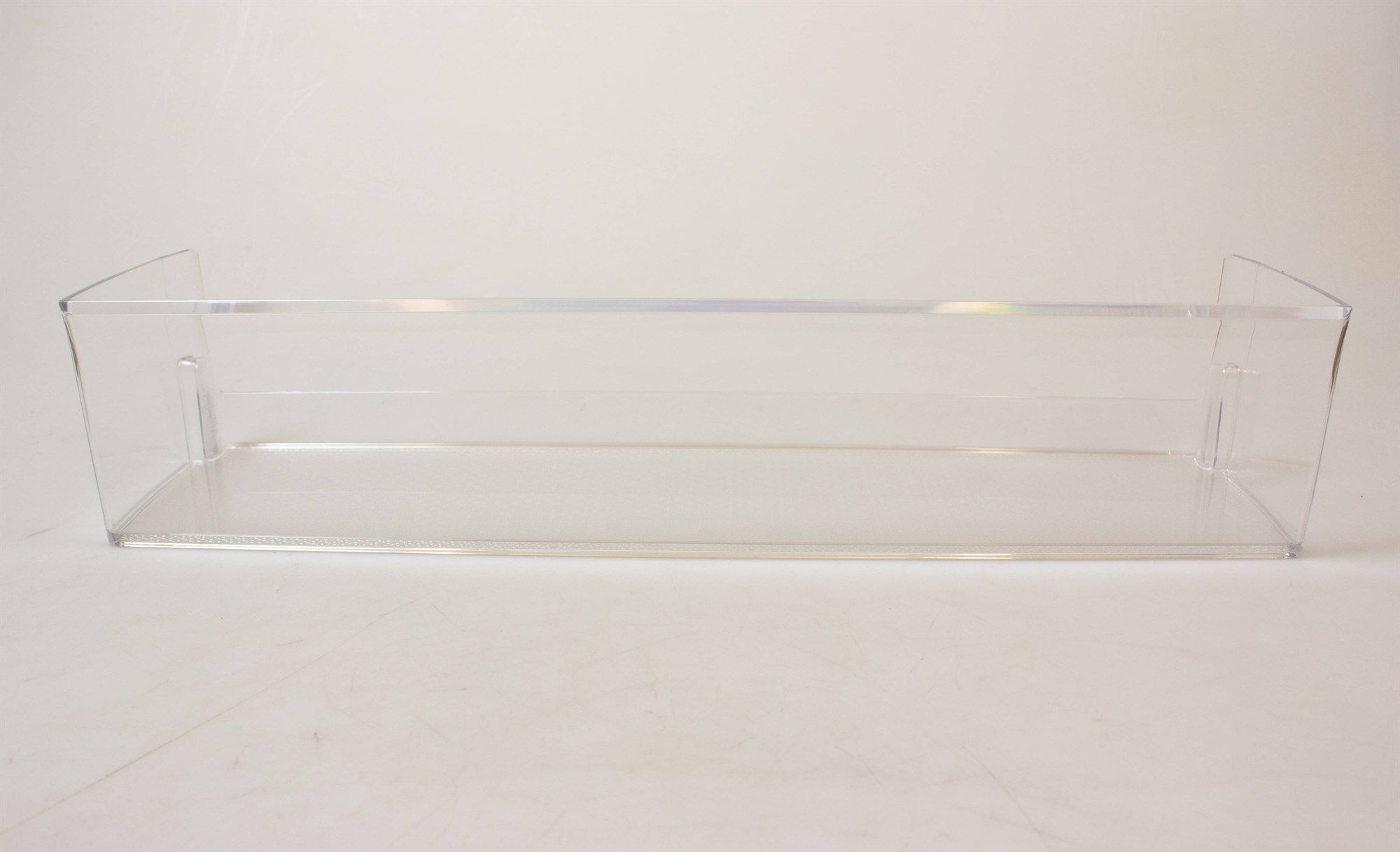 Nedre hylde i køleskabsdør, ofte anvendt som mælkehylde. Dørhylden kan nemt udskiftes uden brug af værktøj.