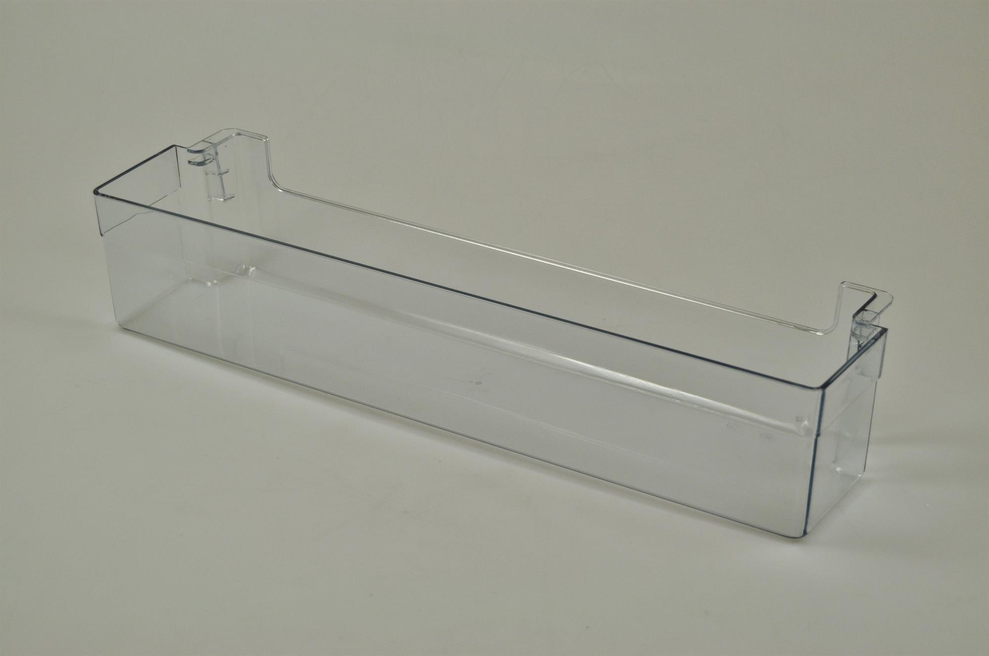 Nedre hylde i køleskabsdør, ofte anvendt som mælkehylde. Dørhylden kan nemt udskiftes uden brug af værktøj.