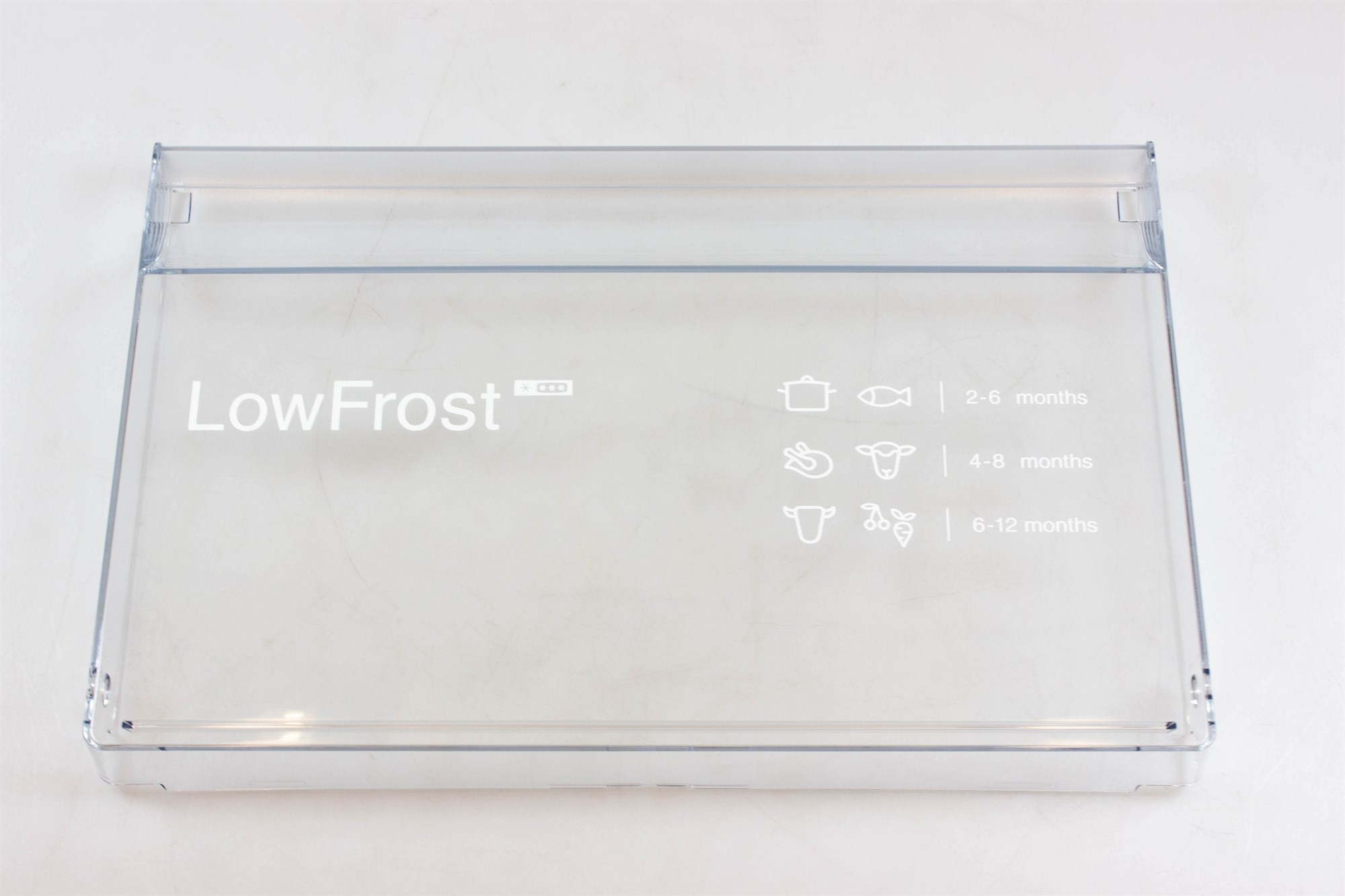 Dette kuldefang er front af fryseskuffen i Siemens fryser. Ofte er det kuldefanget og ikke selve skuffen, der er i stykker, og derfor vil det ofte være nok at udskifte kuldefanget.