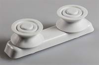 | De øvre kurvehjul til opvaskemaskinen sidder typisk i en udtræksskinne (i nogle tilfælde i en kurvehjulsholder med fx 2 hjul) monteret på indersiden af kabinettet. For enden af skinnerne sidder et kurvestop, som er en plastikdel der forhindrer trådkurven i at køre ud af udtræksskinnen. For at udskifte kurvehjulene, vil du skulle afmontere kurvestoppet og herefter indsætte de nye kurvehjul i skinnen. Intakte hjul vil at sjældent være en nødvendighed for at opvaskemaskinen kan gennemføre programmerne, men defekte eller manglende kurvehjul kan være et stort irritationsmoment, idet kurven har sværere ved at rulle ud, og jo flere hjul der mangler eller er defekte, jo mere støtte, vil trådkurven skulle have. Hvis du har brug for hjælp til at finde øvre kurvehjul til din opvaskemaskine, så tøv endelig ikke med at kontakt os endelig – vi sidder klar til at hjælpe og vejlede dig! Husk at oplyse så mange informationer som muligt fra opvaskemaskinens typeskilt. |
