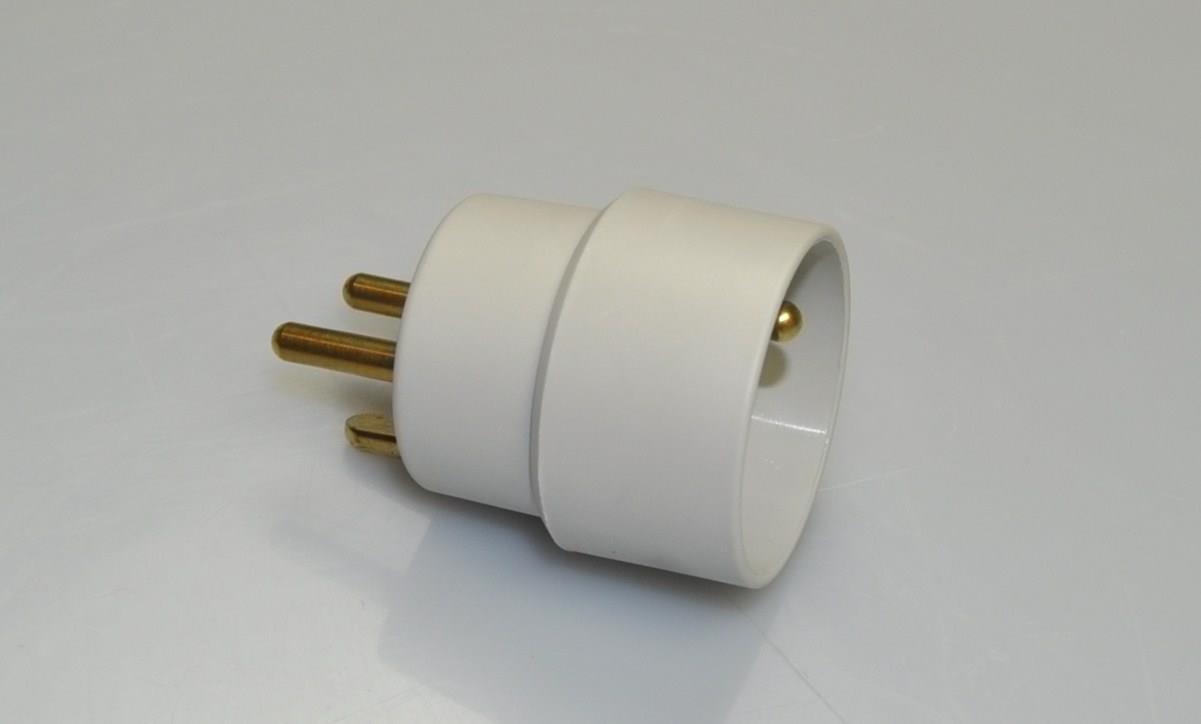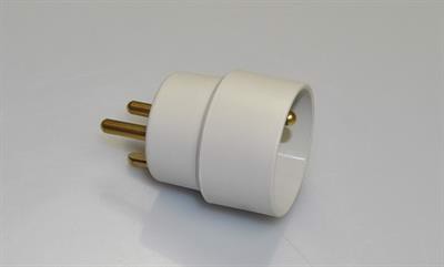 Stikprop omformerstik fra Schuko-stik (EU-godkendte stik) til 3-polet 230V stik, således at produktet kan tilsluttes en dansk 230V stikkontakt med jord.