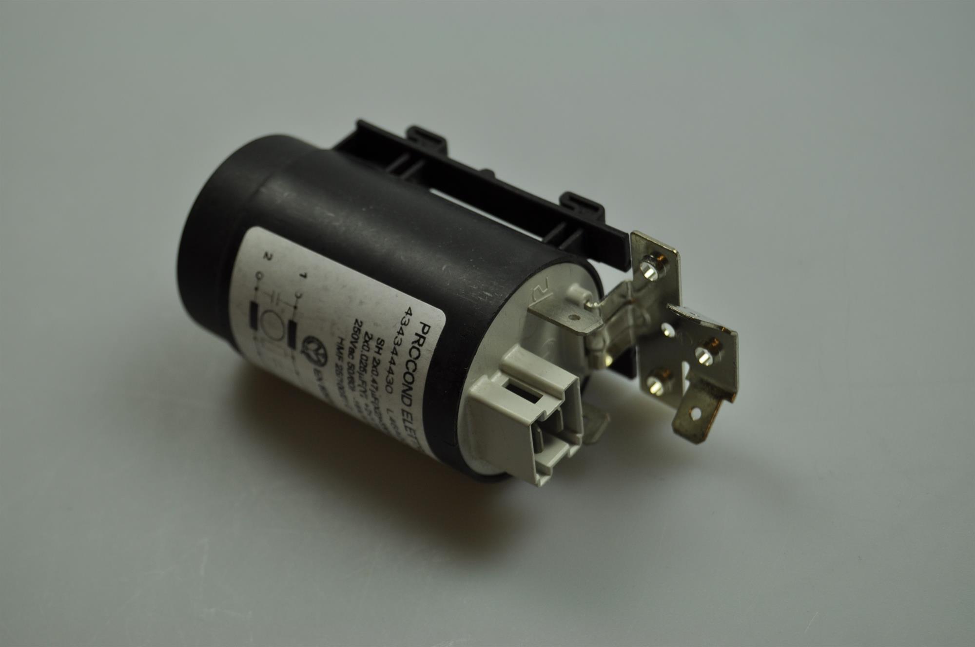 Denne støjkondensator har til formål at fjerne radiostøj fra hjemmets øvrige el-apparater, når vaskemaskinen er i brug.