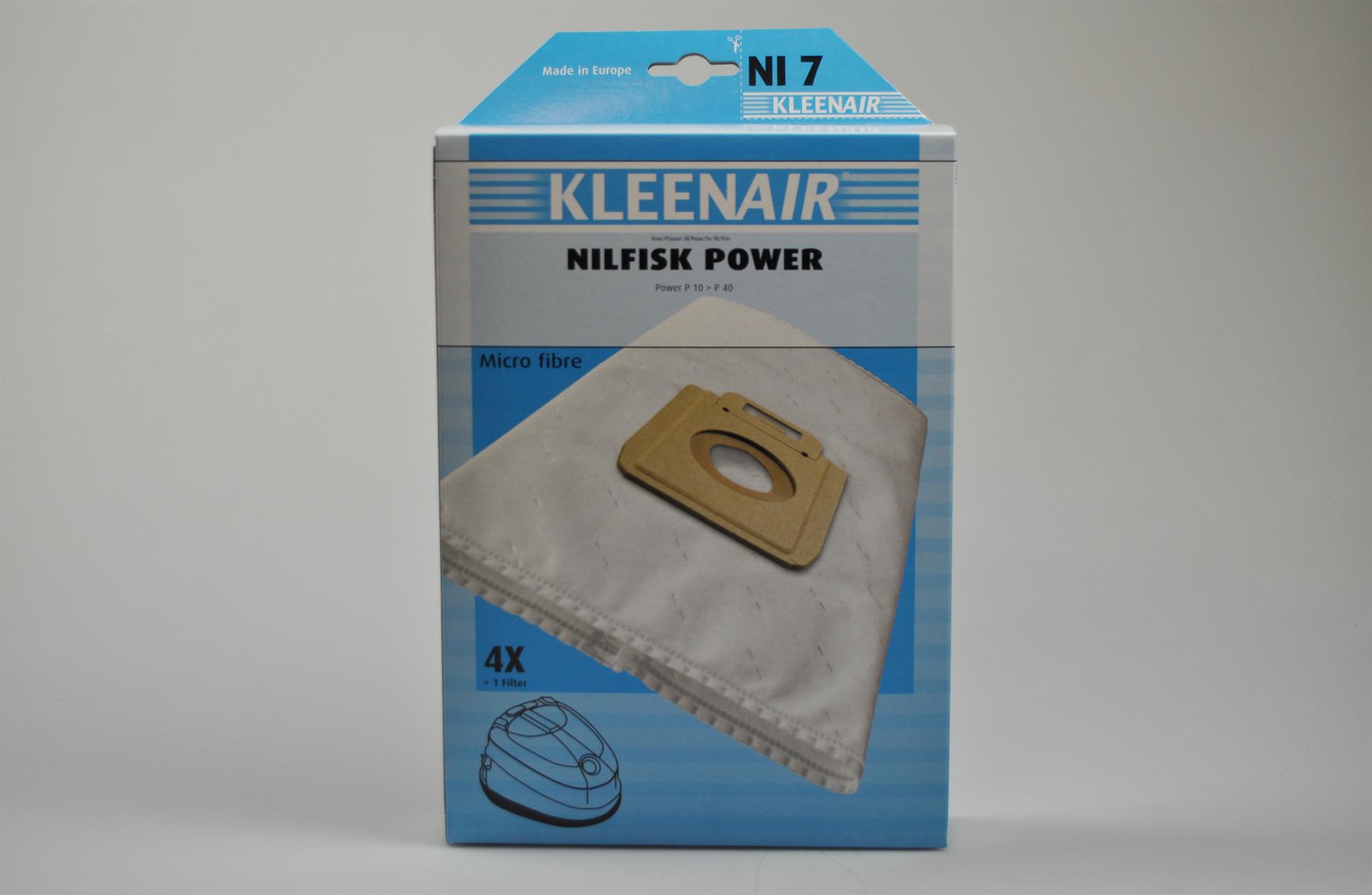 Kleenair støvsugerposer Nilfisk NI 6/7 type King/Extreme/Power. Pakken indeholder 4 stk. støvsugerposer + 1 filter.