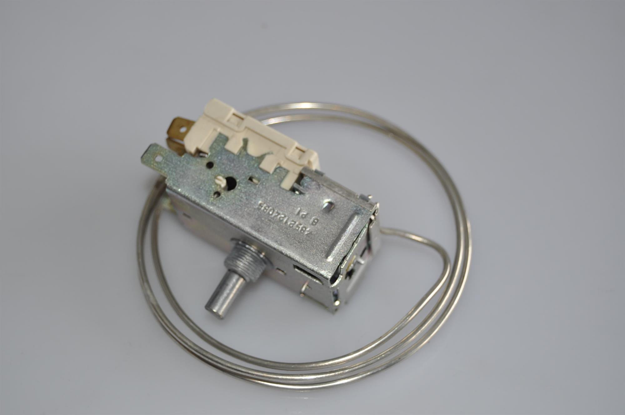 Denne termostat er til køleafdelingen. Ved regulering af køletermostaten opretholdes den ønskede temperatur i køleskabet - jo højere der skrues op for termostaten, desto koldere bliver der i køleskabet.