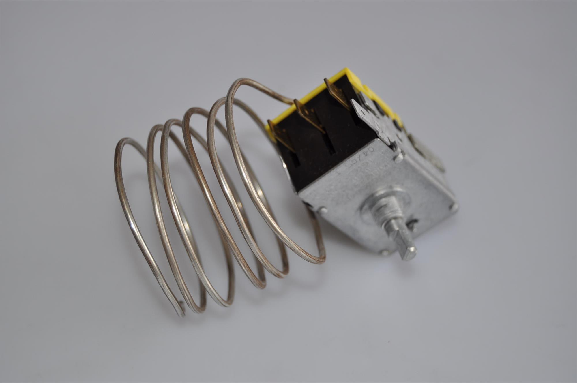 Denne termostat er til køleafdelingen. Ved regulering af køletermostaten opretholdes den ønskede temperatur i køleskabet - jo højere der skrues op for termostaten, desto koldere bliver der i køleskabet.