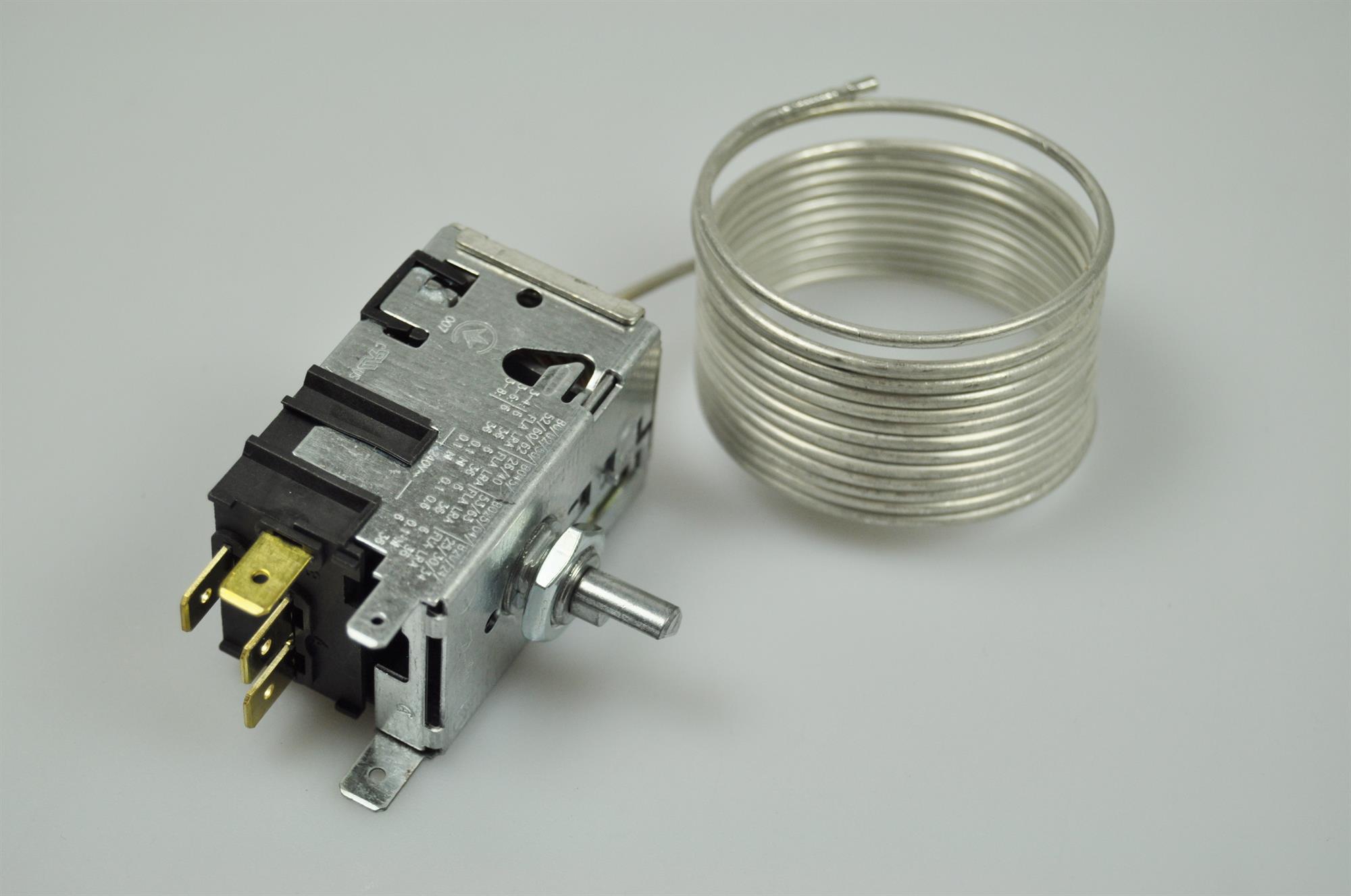 Denne termostat er til køleafdelingen. Ved regulering af køletermostaten opretholdes den ønskede temperatur i køleskabet - jo højere der skrues op for termostaten, desto koldere bliver der i køleskabet.